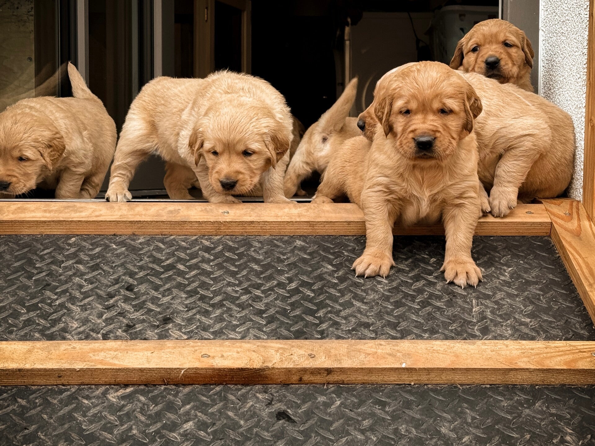 Gerade in der sensiblen Vegetativen- und Übergangsphase wollten wir unsere Hündin mit den Welpen in ihrem gewohnten Umfeld belassen, wo wir sie jederzeit unterstützen können und die Welpen immer im Blick haben.